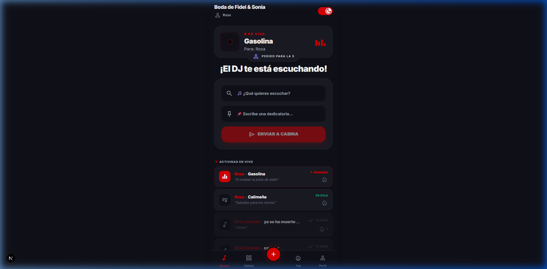 Diseñamos la atmósfera perfecta para tu gran día. Combinamos la energía de la música en vivo, un sonido impecable y luces espectaculares. Sorprende a todos con nuestra plataforma digital, donde tus invitados piden sus canciones desde el celular para que la alegría nunca se detenga.